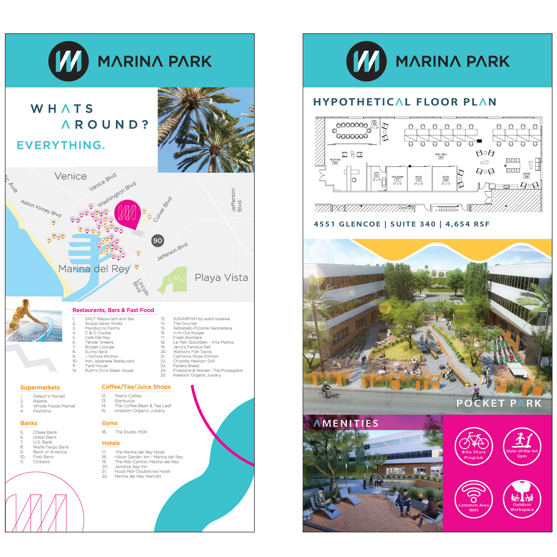 Six (6) foot tall indoor leasing boards. Coordinated with vendor for printing, mounting and installation. Multiple pairs were produced for available suites.
